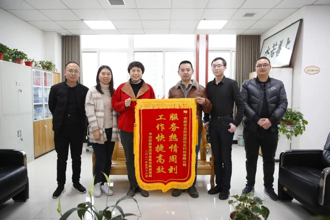 近日,中國(guó)鐵路集團(tuán)西安局安康建筑段的工作人員將一面寫有“服務(wù)熱情周到、工作快捷高效”的錦旗送到市自然資源信息科技有限公司,對(duì)我公司提供的優(yōu)質(zhì)服務(wù)態(tài)度和高效辦事效率給予了高度贊揚(yáng)和誠(chéng)摯感謝。