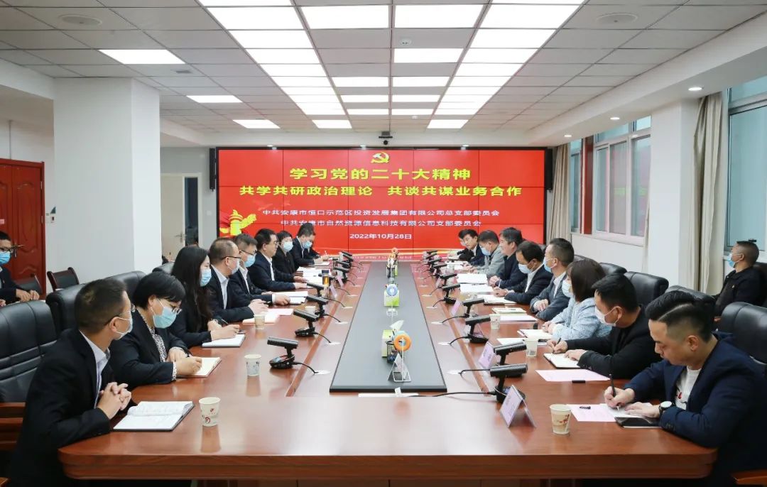 10月28日,安康市恒口示范區(qū)投資發(fā)展集團有限公司黨總支和安康市自然資源信息科技有限公司黨支部聯(lián)合開展“學習黨的二十大精神,共學共研政治理論,共談共謀業(yè)務(wù)合作”主題黨日活動,正式簽署戰(zhàn)略合作協(xié)議。雙方領(lǐng)導班子、黨員、發(fā)展對象、入黨積極分子及部門負責人參加活動。