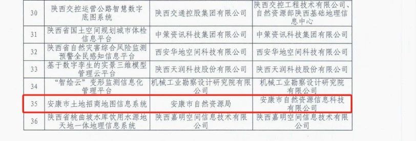 近日,陜西省測繪地理信息局公布陜西省地理信息公共服務平臺優秀應用案例征集和評選活動結果。安康市自然資源信息科技有限公司研發的“安康市土地招商地圖信息系統”,經安康市自然資源局推薦,入選陜西省地理信息公共服務平臺優秀應用案例。